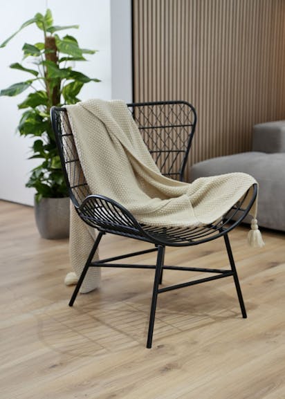 » Im Winter lege ich auf den Drahtschuhl gern eine flauschige Kuscheldecke oder Kunstfell. Im Frühling und Sommer wechsle ich auf ein XXL Kissen. Am Liebsten mag ich Erdtöne. «