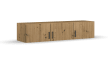 Ausführung mit Front und Korpus in Eiche Artisan Nachbildung, Griffe in grau/metallic, Innenfarbe Texline Leinenoptik in naturfarbend, 3 Türen davon 1 abschließbar,