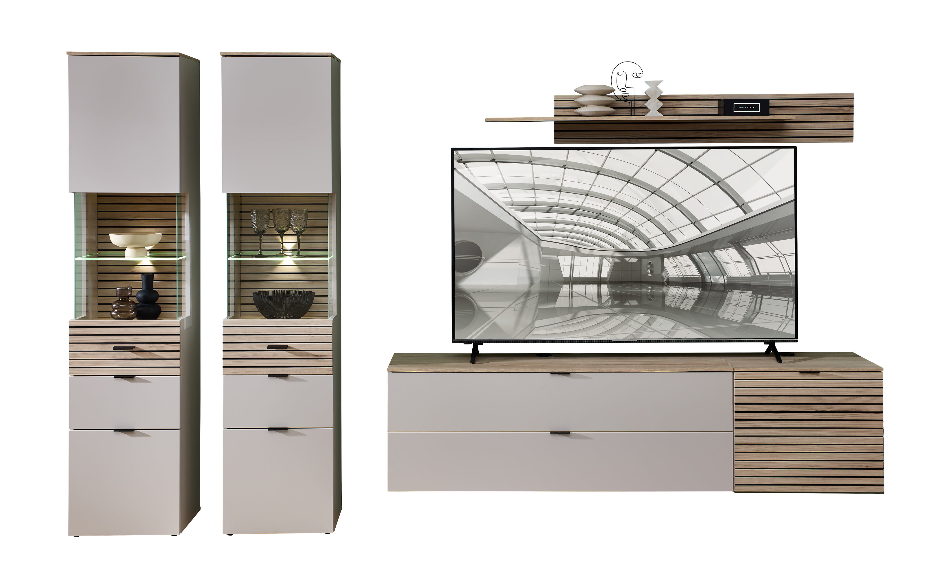 Wohnkombination Ina, kaschmir/Riva Eiche, 320 cm