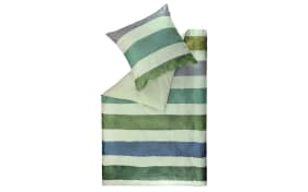 Satin Bettwäsche, grün gestreift, 135 x 200 cm
